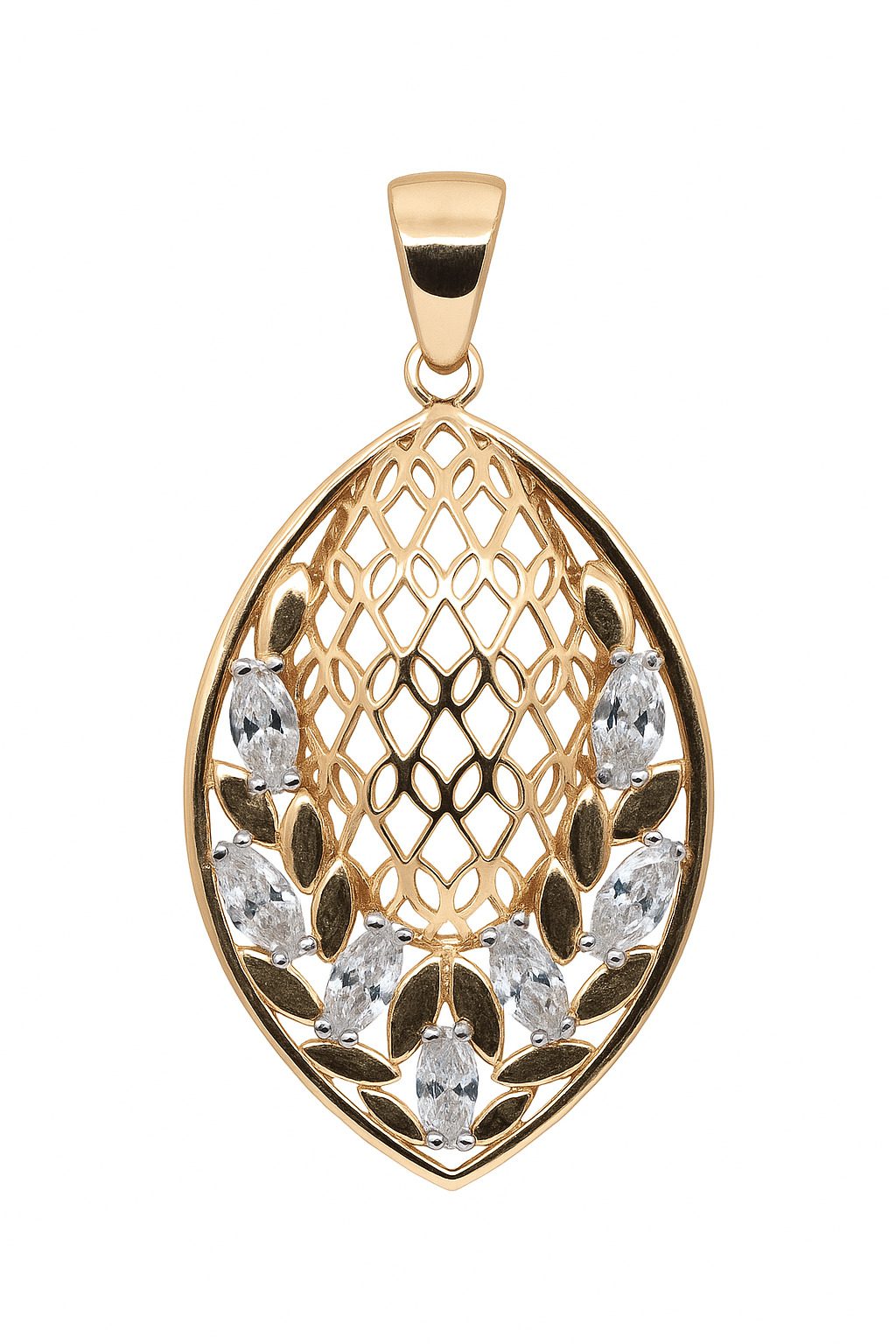 Zachwycająca złota zawieszka o finezyjnym, ażurowym wzorze, wykonana z żółtego złota próby 585 i ozdobiona lśniącymi cyrkoniami w kształcie markizy. Precyzyjne wykonanie i lekka forma sprawiają, że zawieszka prezentuje się niezwykle stylowo i kobieco.