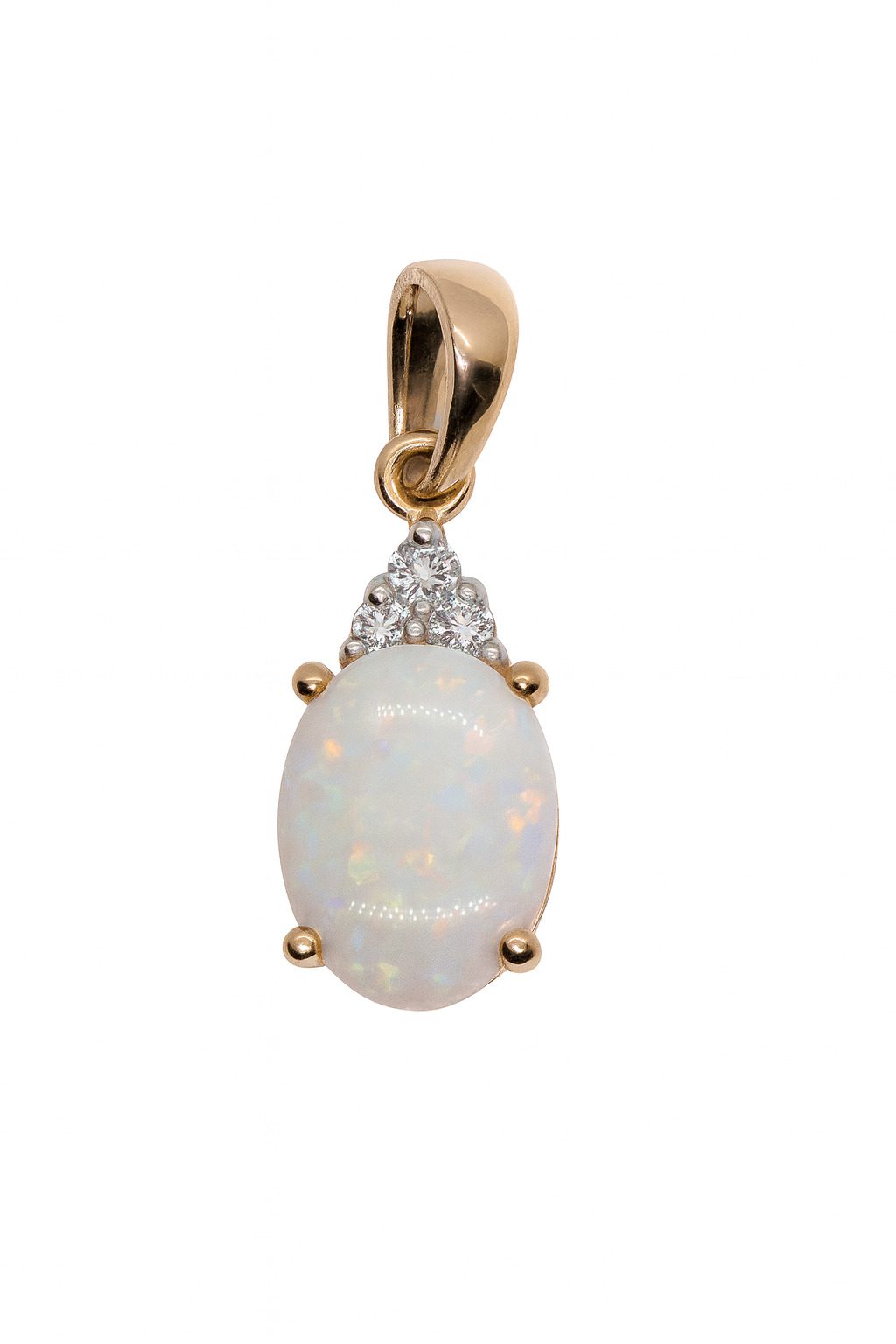 Subtelna zawieszka z żółtego złota próby 585 z opalem 1.45 ct i diamentami 0.06 ct. Elegancja i delikatność w wyjątkowej formie.