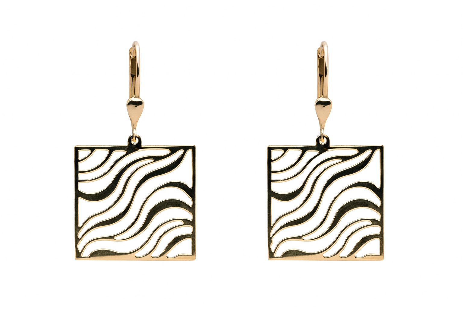 Nowoczesne złote kolczyki o oryginalnym, geometrycznym wzorze to doskonały wybór dla kobiet ceniących minimalistyczną elegancję z artystycznym akcentem. Wykonane z żółtego złota próby 585 z elementami rodowanymi, ważą 5,36 g. Kwadratowa forma z dekoracyjnym, falistym ażurowym wycięciem przyciąga wzrok i świetnie komponuje się zarówno z codziennymi stylizacjami, jak i wieczorowym lookiem. Angielskie zapięcie zapewnia komfort noszenia i bezpieczeństwo. To idealny wybór dla miłośniczek nowoczesnej biżuterii z charakterem.