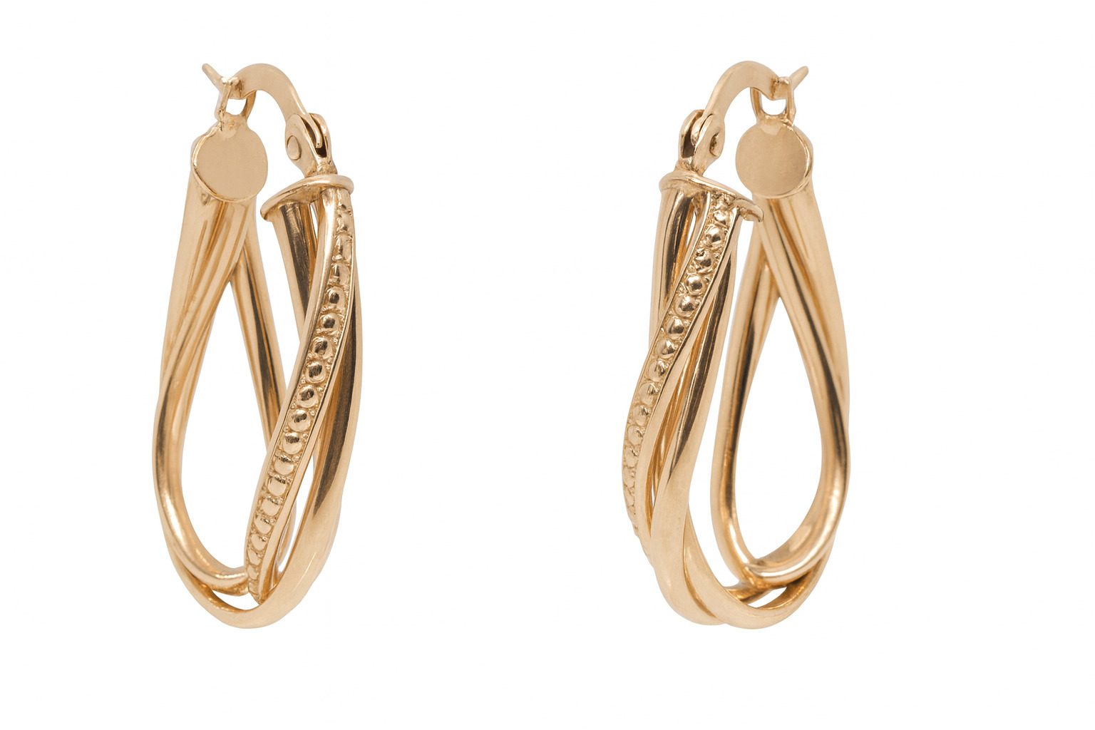 Klasyczne złote kolczyki z żółtego złota próby 585 o ciekawym, skręconym kształcie. Eleganckie i ponadczasowe – idealne na każdą okazję.