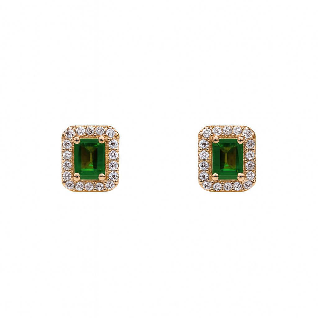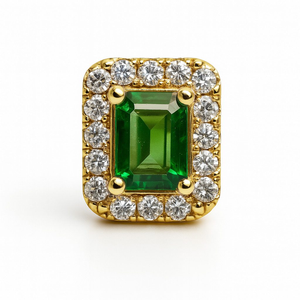 Subtelne, a zarazem olśniewające kolczyki wykonane z żółtego złota próby 585. W centrum każdego z kolczyków osadzono intensywnie zielony tsavoryt o łącznej masie 0,19 ct, który pięknie kontrastuje z otaczającymi go lśniącymi diamentami (łącznie 0,08 ct). Elegancki, geometryczny kształt i klasyczne zapięcie typu sztyft sprawiają, że kolczyki są wygodne w noszeniu i doskonale sprawdzą się zarówno na co dzień, jak i na wyjątkowe okazje. Biżuteria o wadze 1,23 g, która łączy wyrafinowanie z nowoczesnym stylem.