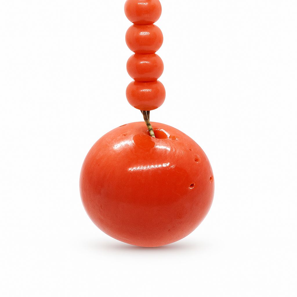 Zjawiskowe złote kolczyki wykonane z żółtego złota próby 585, ozdobione naturalnymi koralami o średnicy od 3,80 do 13,75 mm. Subtelna konstrukcja oparta na delikatnym łańcuszku i efektownych kulach z koralu tworzy lekką, a zarazem wyrazistą formę. Kolczyki mają długość 48 mm i są zakończone wygodnym zapięciem typu sztyft. To wyjątkowy wyrób jubilerski o wyrafinowanym charakterze, idealny dla miłośniczek elegancji w klasycznym stylu. Stan bardzo dobry – wyrób używany.