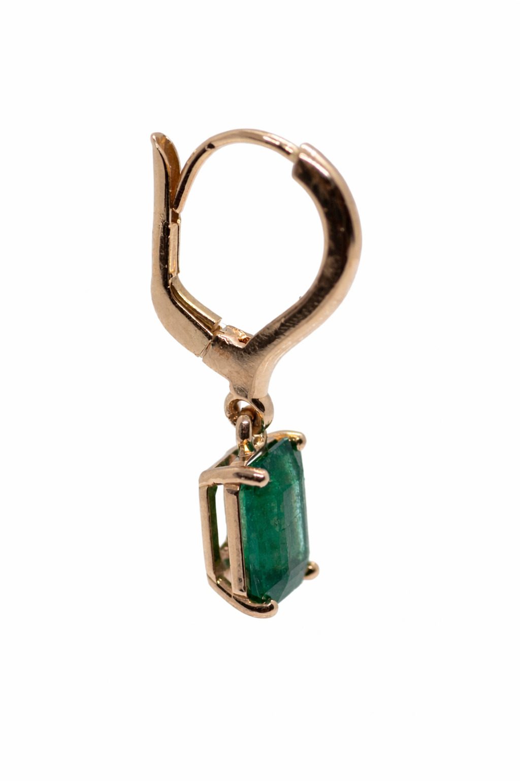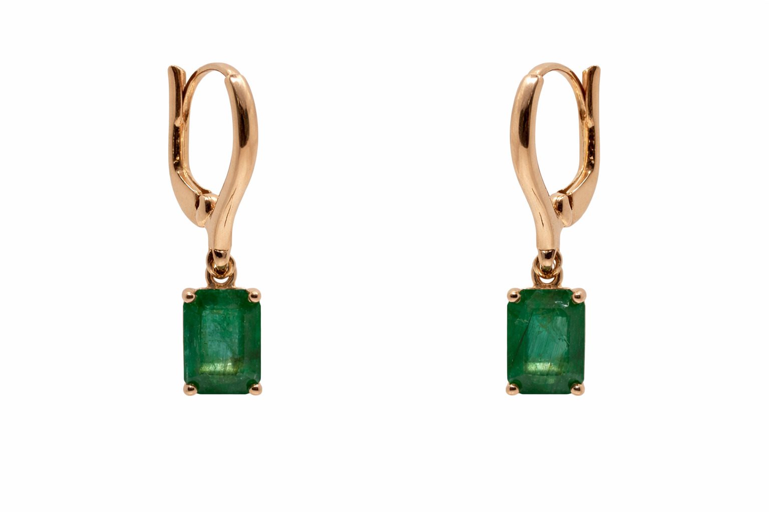 Klasyczne złote kolczyki z naturalnymi szmaragdami o łącznej masie 3,30 ct, wykonane z żółtego złota próby 585. Zapięcie angielskie dla komfortu noszenia.