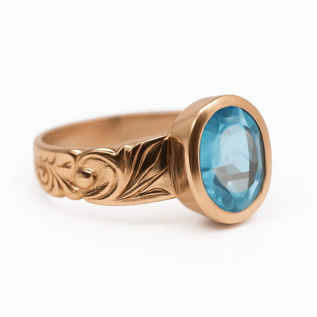 Pierścionek wyróżnia się ozdobną, rzeźbioną szyną o subtelnym, roślinnym wzorze, która nadaje całości niepowtarzalnego, lekko vintage’owego charakteru. Waga pierścionka wynosi 8,77 g, a rozmiar to 17 — doskonały dla kobiet ceniących biżuterię z duszą i niebanalnym stylem.