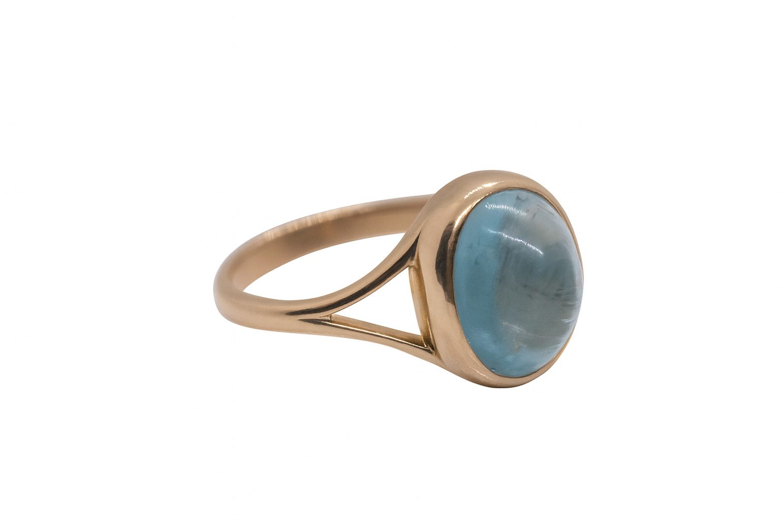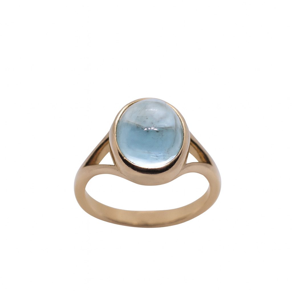 Ten wyjątkowy pierścionek wykonany został z 14-karatowego żółtego złota (próba 585), które pięknie komponuje się z błękitnym odcieniem naturalnego akwamarynu. Kamień o imponującej masie 5.92 ct został osadzony w prostej, solidnej oprawie, która podkreśla jego wyjątkowy kolor i czystość.
