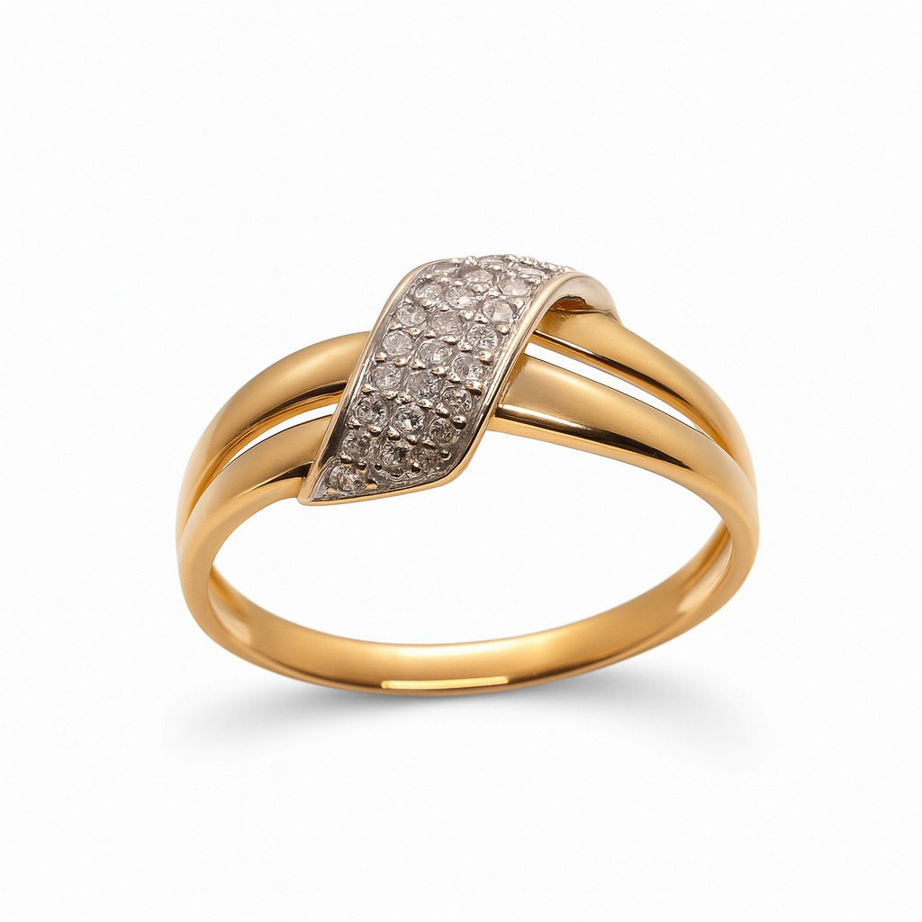 Złoty pierścionek z cyrkoniami wykonany z żółtego złota próby 750. Używany, subtelny i elegancki dodatek w rozmiarze 12.