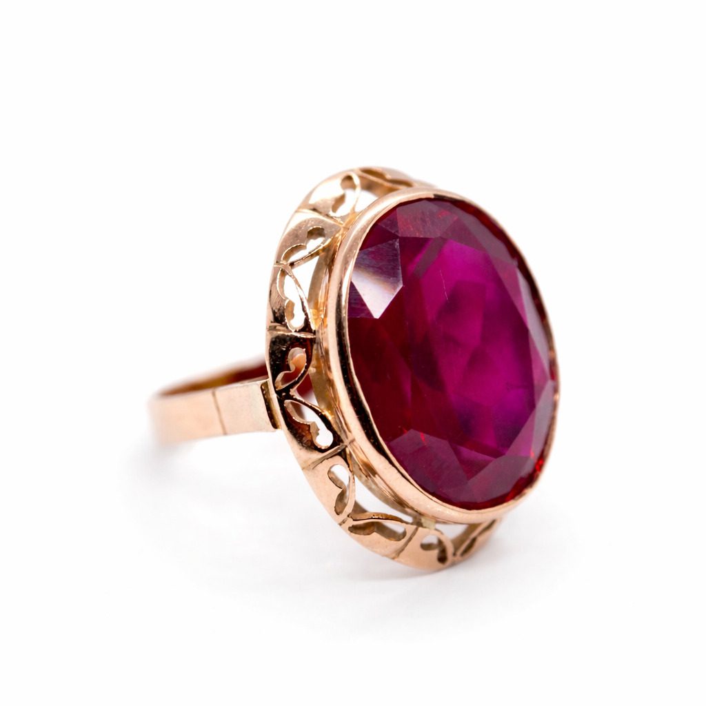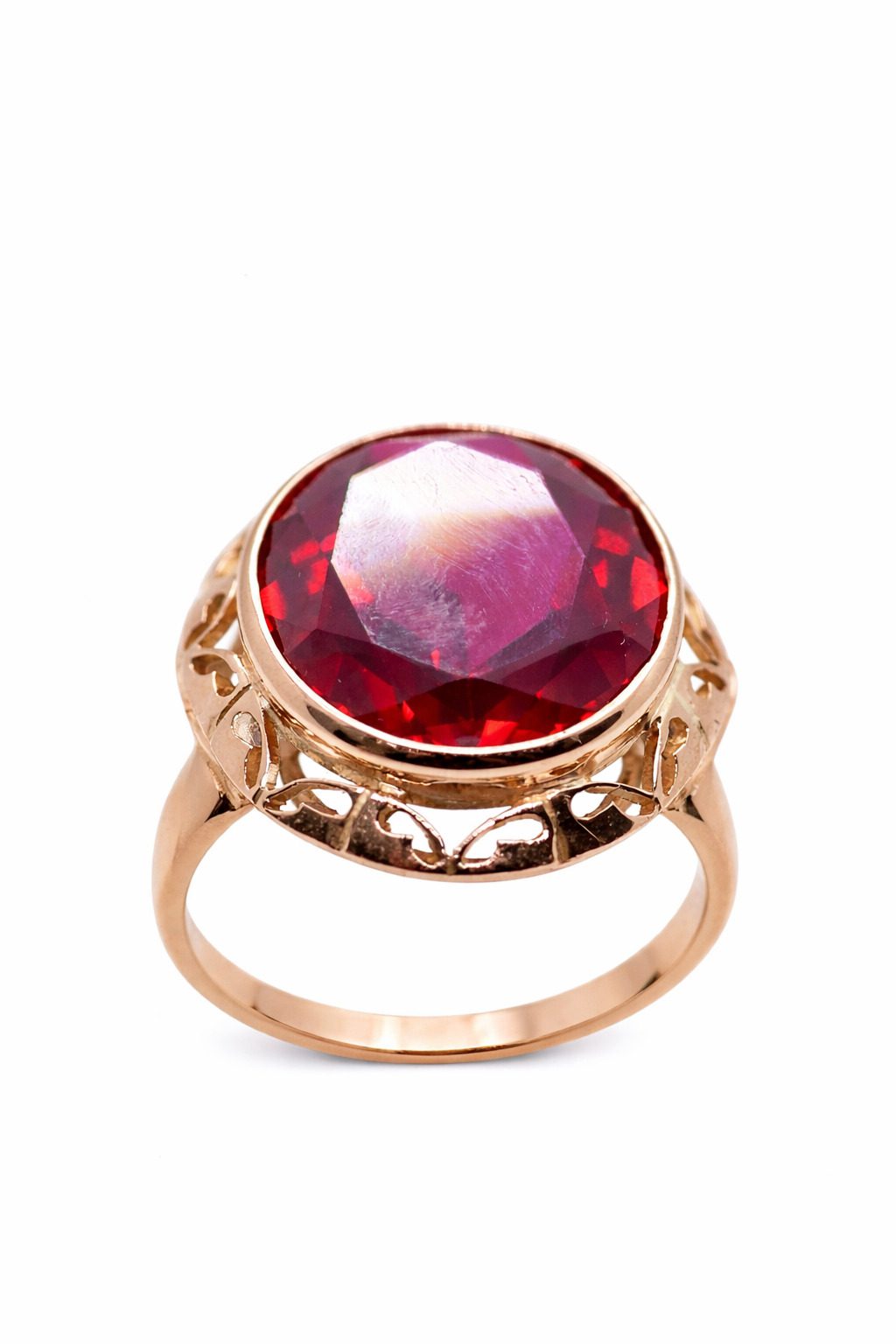 Okazały złoty pierścionek z czerwonym kamieniem w stylowej oprawie z żółtego złota próby 585. Klasyczna elegancja w efektownym wydaniu.