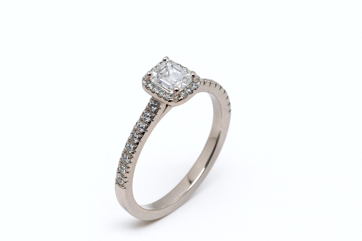 Dodatkowe diamenty zostały umieszczone na obrączce, co sprawia, że pierścionek zachwyca z każdej strony. Łączna masa kamieni wynosi 0.81 ct, a całość waży 3,23 g. Rozmiar 15. Doskonały jako pierścionek zaręczynowy, prezent rocznicowy lub elegancki dodatek na całe życie.