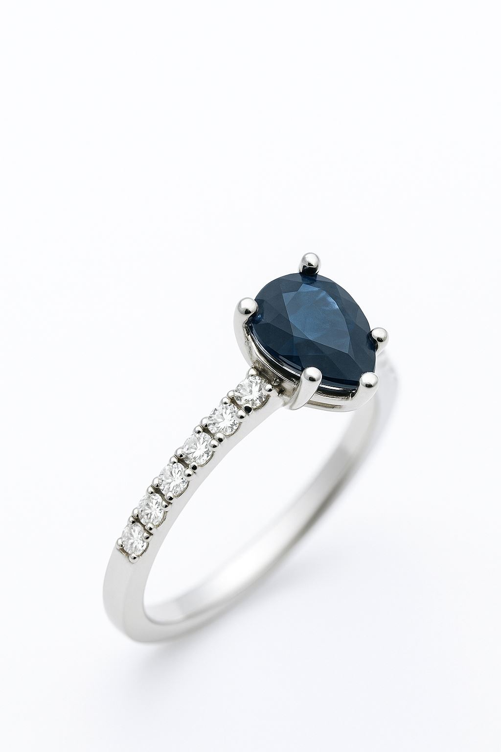 Nowy złoty pierścionek z białego złota próby 750 z szafirem 1,24 ct i diamentami 0,30 ct. Subtelna elegancja w wyjątkowym wydaniu. Rozmiar 14, certyfikat w zestawie.