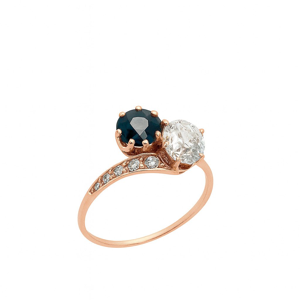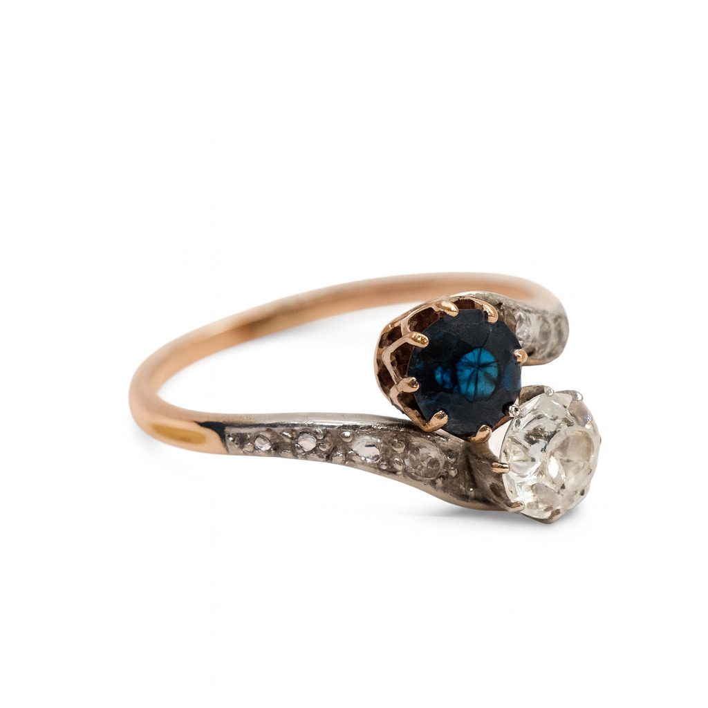 Złoty pierścionek Toi et Moi z diamentem 0,65 ct i szafirem 0,56 ct. Symbol miłości i harmonii w romantycznym, ponadczasowym stylu.