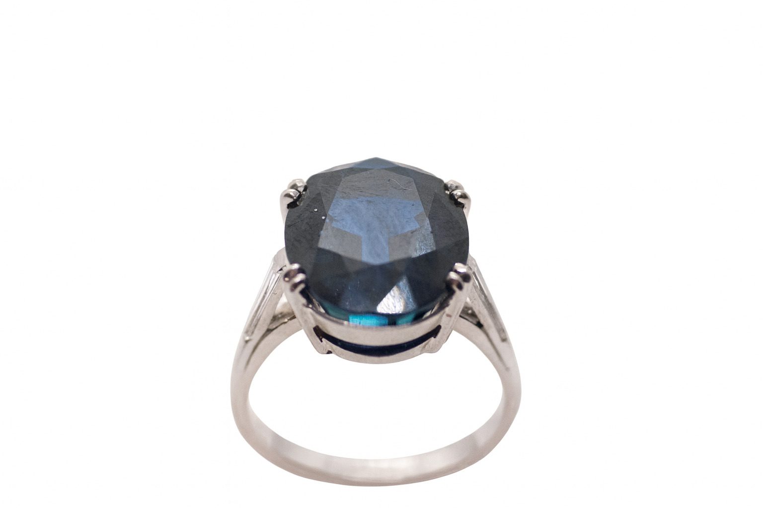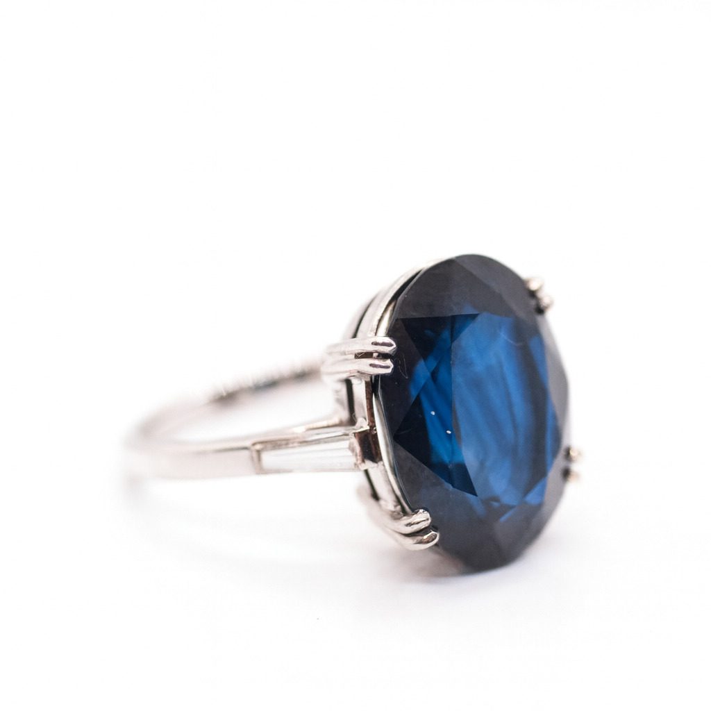 Ekskluzywny złoty pierścionek z białego złota próby 750 z imponującym szafirem 11,48 ct i subtelnymi diamentami 0,20 ct.