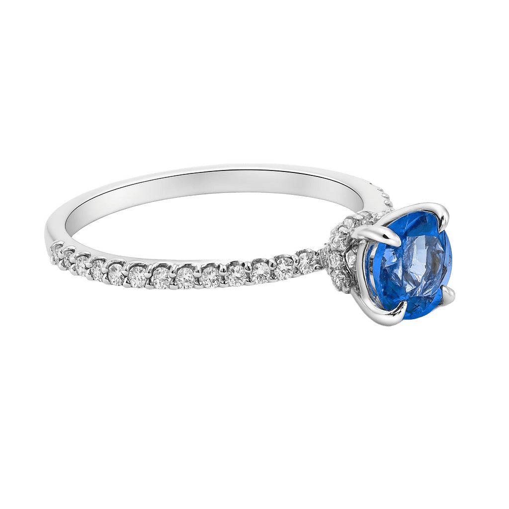 Ten elegancki pierścionek to propozycja dla kobiet ceniących ponadczasowe piękno i szlachetność kamieni. Wykonany z białego złota próby 585, zachwyca wyjątkowym blaskiem naturalnego tanzanitu o masie 0,81 ct w intensywnie niebieskim odcieniu. Jego oprawę dodatkowo zdobią lśniące diamenty o łącznej masie 0,25 ct, rozmieszczone wzdłuż obrączki, co nadaje całości ekskluzywnego charakteru. Pierścionek ma rozmiar 15 i jest nowy, opatrzony certyfikatem autentyczności. Doskonały jako pierścionek zaręczynowy lub luksusowy prezent.