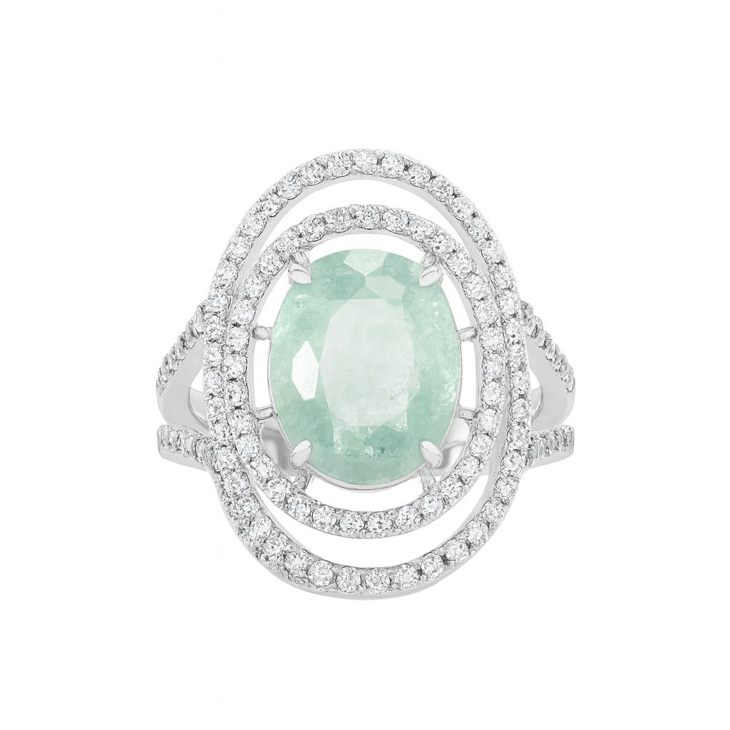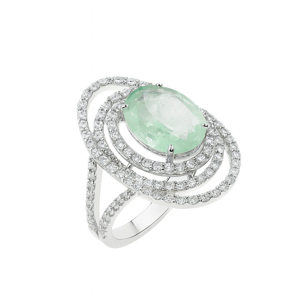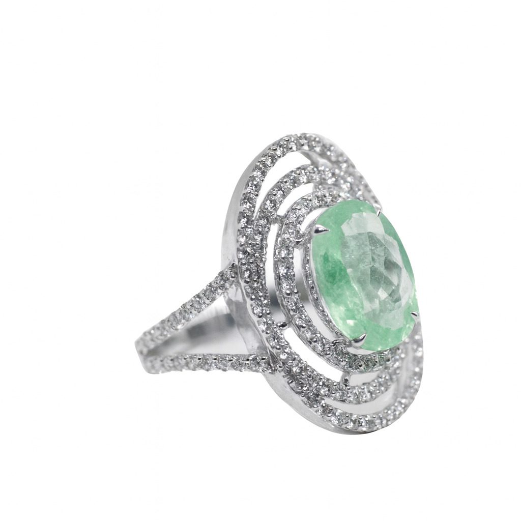 Złoty pierścionek z białego złota próby 585, ozdobiony turmalinem o masie 4 ct i diamentami 1,33 ct. Spektakularny blask i luksusowy design dla kobiet o wyrafinowanym guście.