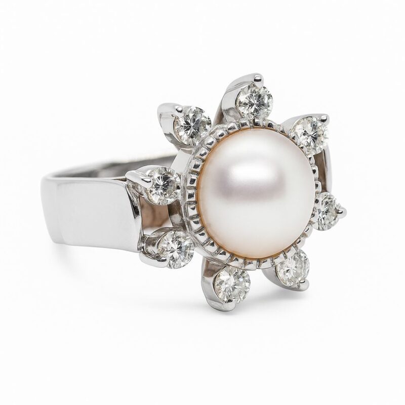 Misternie zdobiona korona pierścionka oraz stylizowane detale tworzą kompozycję o ponadczasowym uroku, idealną do stylizacji retro lub jako unikalny dodatek na specjalne okazje.