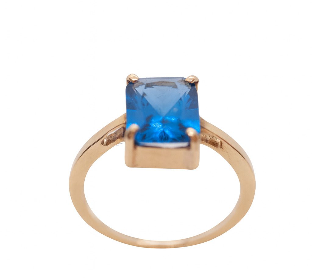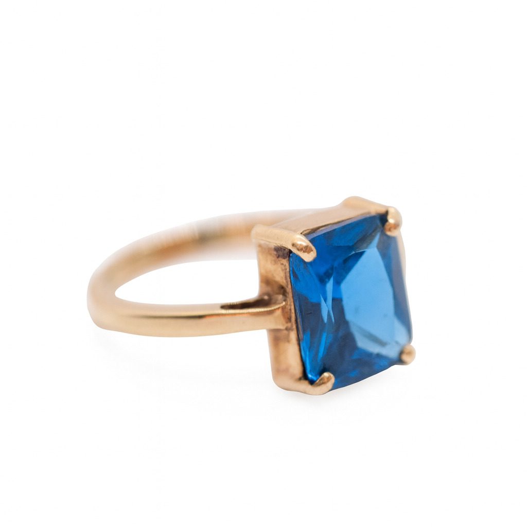 Wyjątkowy pierścionek wykonany z żółtego złota próby 750, zachwycający prostotą formy i intensywnym kolorem kamienia. Centralny punkt biżuterii stanowi duży, fasetowany kamień w odcieniu głębokiego błękitu, który pięknie odbija światło, dodając całości elegancji i szyku. Pierścionek waży 4,43 g i ma rozmiar 16, co czyni go komfortowym w noszeniu, a jednocześnie efektownym elementem stylizacji. Idealny dla osób ceniących ponadczasowy styl i wyraziste dodatki.