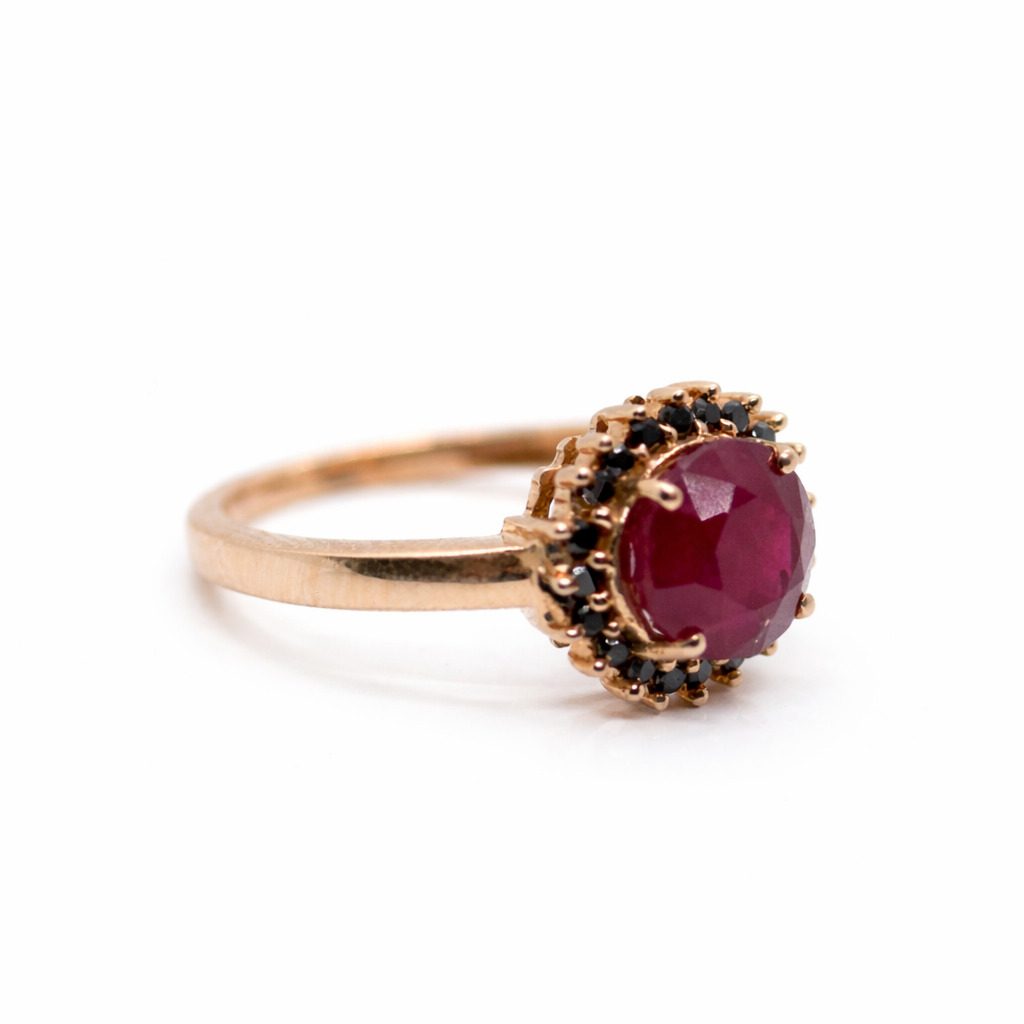 Złoty pierścionek z rubinem i czarnymi diamentami