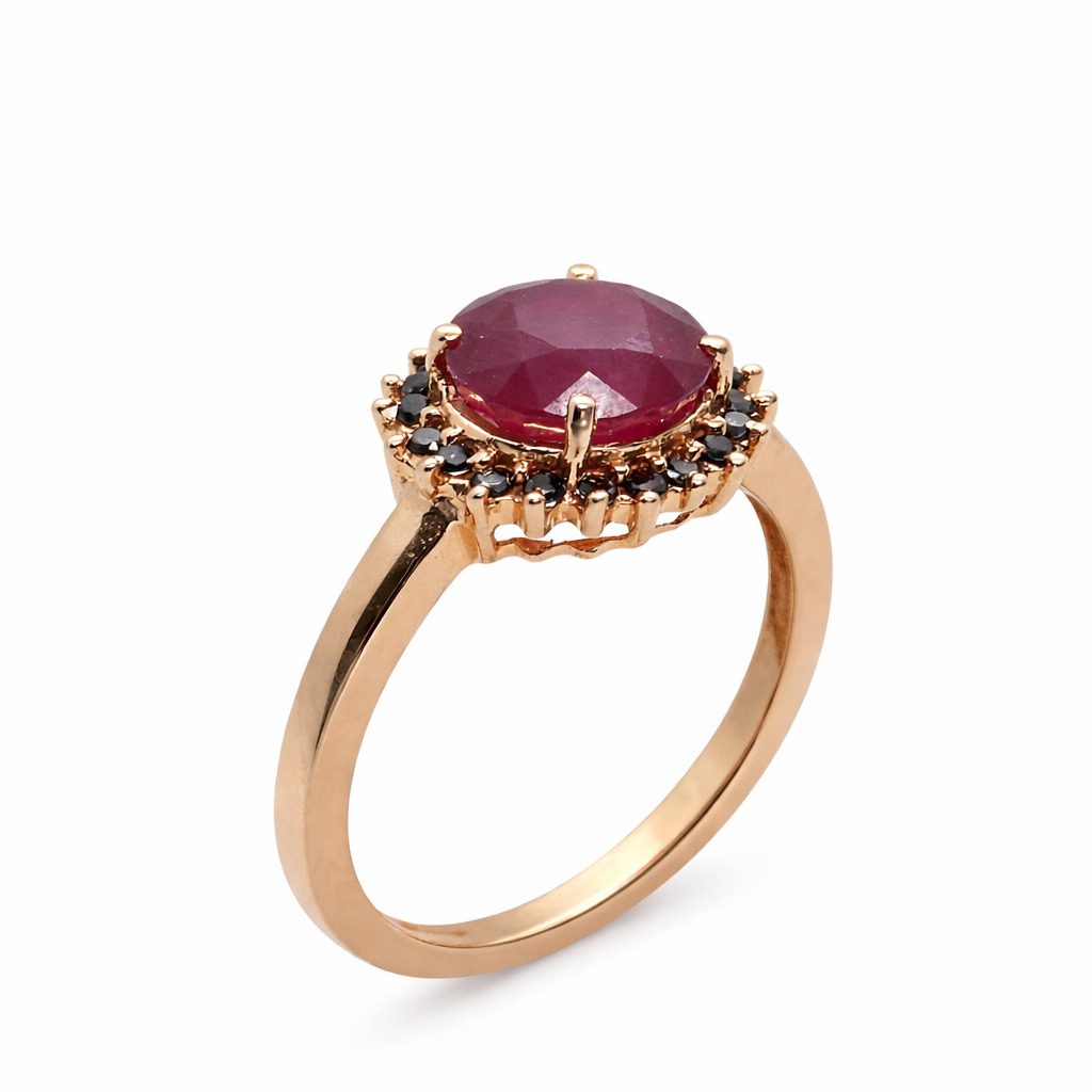 Elegancki złoty pierścionek z rubinem o masie 2,51 ct otoczony czarnymi diamentami. Klasyczna forma i wyjątkowe kamienie czynią go idealnym wyborem na wyjątkowe okazje.