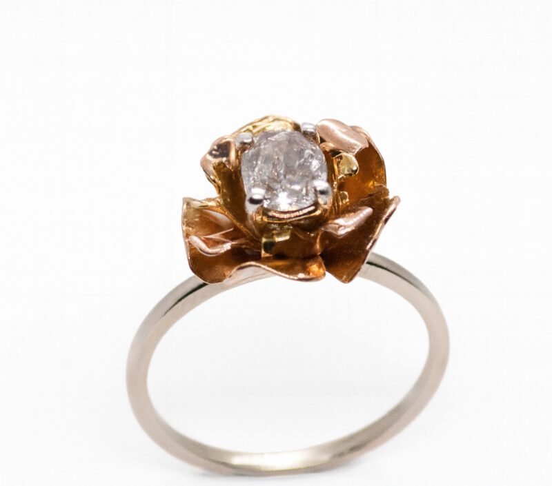 Złoty pierścionek z szafirami o łącznej masie 3,55 ct, wykonany z żółtego złota próby 585. Nowoczesna forma z kroplą szafiru w centrum.