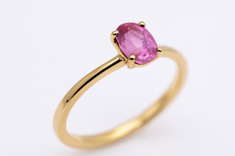 Centralnym punktem kompozycji jest szafir o masie 0.20 ct, którego głęboki niebieski kolor kontrastuje z ciepłym odcieniem złota. Bogate zdobienie w formie kwiatowego motywu nadaje pierścionkowi lekkości i wyjątkowego uroku.
