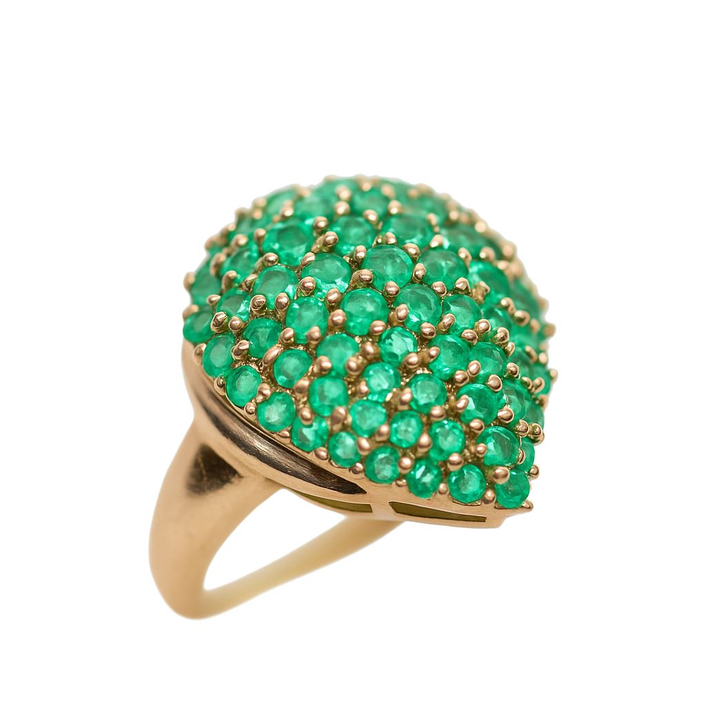 Złoty pierścionek próby 585 wysadzany szmaragdami o łącznej masie 2,50 ct. Elegancki, efektowny wyrób w rozmiarze 10.